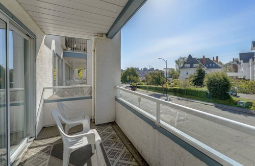 Welcome to our converted hotel space into a comfy home! As you step inside, you'll immediately notice the cozy queen-sized bed, inviting you to relax and unwind. To your right, the well-stocked kitchen awaits, equipped with everything you need for a comfortable stay. Moving further in, you'll find the comfy patio set, perfect for enjoying the fresh air and a morning coffee. The full bathroom is spacious and includes a bathtub, providing a perfect spot for a relaxing soak. Additionally, guests can take advantage of the free parking space available with the unit. Situated in downtown Victoria, this studio puts you within walking distance of the city’s top attractions, restaurants, and shops. Whether you're here for business or leisure, our studio offers the perfect blend of comfort and convenience.