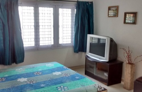 Tulips Bungalow is a four bedroom hall kitchen fully furnished and fully air-conditioned independent bungalow with modern amenities. Verandah, Balcony, Terrace and open garden space add to the charm of the bungalow. We have a functional kitchen with fridge, microwave, RO and gas stove for your cooking needs. Three car private parking, a small in house library with books and board games are much enjoyed by our guests.