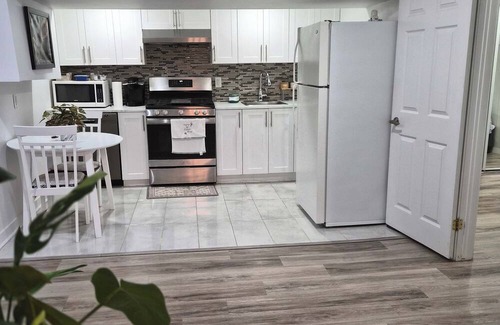 Enjoy a comfortable and private stay in this cozy basement suite. It features 2 bedrooms, a full bathroom, a fully equipped kitchen, and a dining area—perfect for short stays. Ideal for families, travelers, or business visitors seeking peace and convenience. The bedrooms offer comfortable beds, clean linens, and space to relax. The kitchen has everything you need to prepare your meals, and the bathroom is fully equipped. Includes Wi-Fi, heating, and parking (if applicable). Located in a safe neighborhood close to supermarkets, public transport, and local services. Your home away from home awaits—book now!