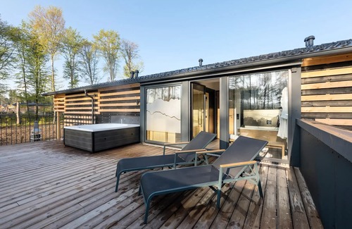 Accommodation: Living room Equipped kitchen 3 ground floor bedrooms with 2 twin beds each Upstairs bedroom with 2 twin beds Upstairs spa bathroom with Finnish sauna, Grohe wellness shower, bathtub with whirlpool function and outdoor whirlpool bath on the private spa terrace 2 en-suite bathrooms with rain shower Independent bathroom with rain shower 2 separate toilets Terrace