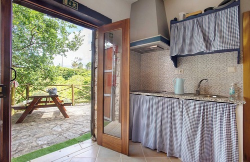 The Stone Country House at Quinta do Castelo is located in Cesaredas, Reguengo Grande (Lourinhã), and is the ideal accommodation for a relaxing getaway. With 45 m², the house consists of a kitchen, living room, bedroom, and bathroom, accommodating up to 2 people. You have access to Wi-Fi, air conditioning, and a fully equipped kitchen with extractor hood, hob, fridge, various dishes, coffee machine, toaster, microwave, and television. Towels and bed linen are provided. The accommodation includes a private balcony on a property of almost 1 hectare, with diverse landscapes: surrounding trails, a forest with native species, an orchard with various fruit trees, a vegetable garden, and areas dedicated to aromatic herbs and tea plants. There is also a well-maintained shared garden, rose areas, a pond with running water where fish and frogs live, an insect hotel, and a seed exhibition. One parking space is available on the property. One pet is allowed. Smoking, making fires, or holding events inside is not permitted. You are asked to respect quiet hours during your stay (no noise between 22:00 and 10:00). The property has guidelines for correct waste separation, with more information provided on site.