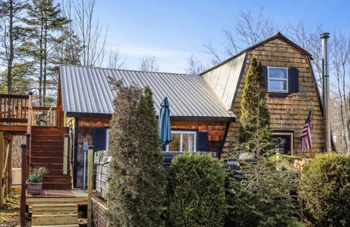 N. Conway 20 minutes away! ⛷ Peace & tranquility is the first thing you feel when you pull into the driveway. A private location with a beautiful brook running along side of the home and just a short walk away is the beautiful association beach on Lower Kimball Pond💦 So much to do here! Sherman Farms is minutes away, hiking 🥾 , snow mobile, ice fishing, skiing & snowboard🏂- you name it! Private hot tub on deck👙! Unreal views of stars✨ wood burning fireplace