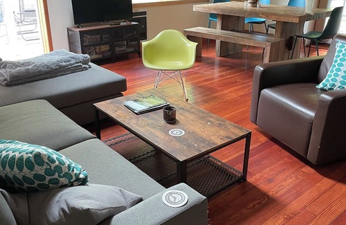 Enjoy the serene waterfront setting of this beautiful cabin with few neighbors and just minutes off I-5 and 45 minutes from Portland Airport! Remodeled fully-equipped kitchen, large dining tables both inside and on the deck. Tons of natural light, gorgeous, restored hardwood floors, vaulted ceilings with exposed beams and stone fireplace in main room. Amazing river views from every room. French doors open to the wrap-around deck with private view of the Kalama River. Fish, swim and relax!