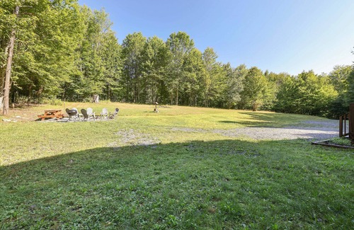 Relax with family and friends at this peaceful cabin with 8 acres to do all sorts of outdoor activities! With a great view from any area in the house, cuddle up near the fireplace to watch tv after a long day of fun. There will be plenty of room with four bedrooms and two bathrooms with a spacious kitchen and living room. Feel like stargazing? Have a campfire right near the house to enjoy the beautiful night sky! Enjoy the covered deck to continue the fun even if it's raining! ( no extra guess allow)