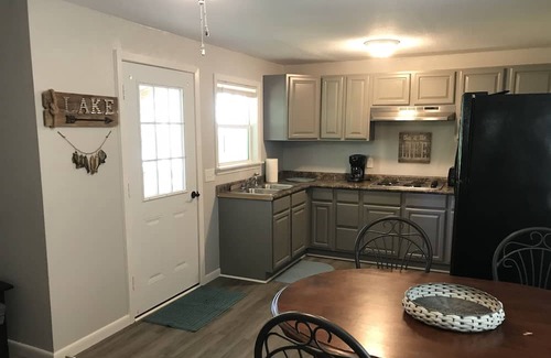 The Blue Heron is a cozy cottage that is WATERFRONT and has a full kitchen, bathroom and 1 bedroom (king bed) along with a queen pull out sofa in the living area, great for kids or extra family joining in for the stay! It also has a full size washer and dryer for your convenience! VERY CLEAN! The property slopes to the water for easy boat access during your stay, should you bring one when you come. There is a fire pit down by the waters edge, for evening campfires to enjoy while watching the sun set! There is also a grill to enjoy, on the deck/lakeside of the property. Sorry-NO PETS ALLOWED due to allergies!!