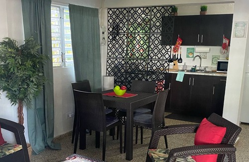 We have all the utilities to make you feel at home, a feature that My West Little Corner Apt. Treasures in its apartments. Netflix, Disney Plus, Wifi, local PR channels, Roku with its free channels, parking for up to two vehicles, air conditioners throughout the apartment, surrounded by greenery, close enough to the city while enjoying a country atmosphere, makes our space a cozy one for the enjoyment of the family and workers who come to the West area to visit or work. Among the services that we offer to our guests, it is worth mentioning beach / pool towels, a domino table with its 4 chairs and dominoes, two beach chairs. Fully equipped apartment, the only thing you should bring is your personal things, we have the rest.