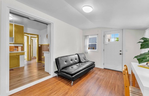 As you enter the home you walk into the main hall with the living room on the right with the two sofa beds. As you walk through the room you have the main floor full bathroom on the left and the kitchen straight ahead. The kitchen is equipped with all the necessities. Past the kitchen is the game/ rec room with access to the backyard on the left of the room. On the right of the room is the only bedroom on the main floor with an ensuite bathroom.
