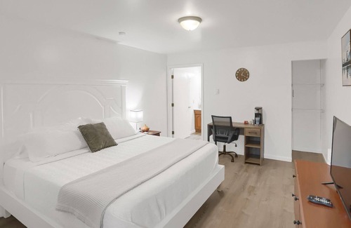 This cozy King room is the perfect place to relax and unwind after a long day of exploring. You will have all the amenities you would need to feel right at home! We provide free wifi and a smart tv with cable or streaming. The room also has a coffee bar as well as a mini fridge! Pets are allowed in this room but there is a $45.00 pet fee. We do kindly ask you to keep pets off the bed.
