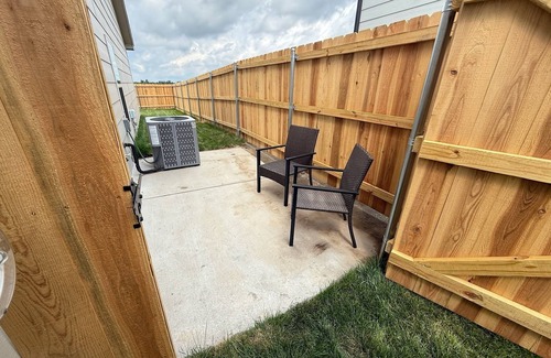 This cozy, modern retreat offers a warm fireplace, comfy plush sectional, and a clean kitchen with stainless steel appliances—perfect for relaxing. Zero-entry with no stairs ensures easy access. Enjoy a spacious bathroom with a sleek vanity, and rest easy on clean, nice beds. Nestled in a private, quiet Park City neighborhood, it’s just 10 minutes from a great location with stores and fun near Park City Arena, Valley Center, and Wichita. Ideal for up to 6 people, with free driveway parking.