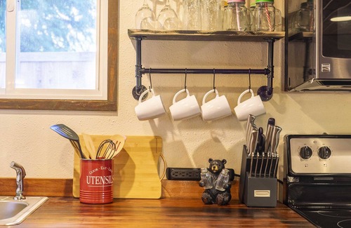 We have worked hard to create an amazing guest experience and we can’t wait to share it with you! Your guesthouse cottage is fully furnished and stocked with all the basics you need to make your stay relaxing and comfortable. Enjoy sleeping on a comfy memory foam queen-size beds in both bedrooms. The sofa bed pulls out to a full-size bed and all the linens including a fluffy bed topper are tucked away in the storage chaise. There is a full kitchen, walk-in shower and washer/dryer. Our main house is detached and close by but separated by a fence for your privacy and ours. Enjoy your morning coffee listening to the plethora of birds singing and chirping in the early hours. Then look forward to finishing your day off around the fire pit or soak it up in the hot tub.