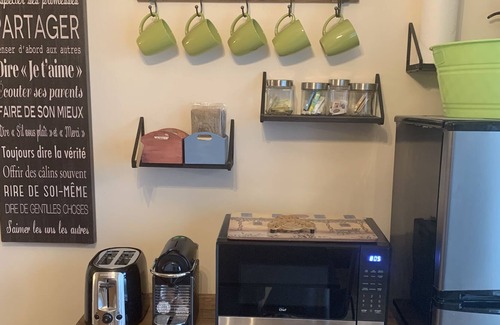 Cozy studio just a short ride to downtown. Nice bathroom with shower. Fridge/freezer, toaster, microwave and Nespresso machine. Retro/antique living room area with large TV, internet, Prime Video. Well located with good public transportation straight into town. In minutes be downtown, in Old Montreal, at the Casino or on the South shore; also only about a 9-12 minute cab ride to the airport.. Owner available at all times.