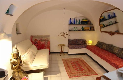 The beautifully renovated village house of Casa delle Stelle is located above Imperia in the district of Poggi, just a few kilometers away from the sea. The holiday house offers ample room for four people. There is a small painter's studio in the basement, which has been turned into a bedroom with a sofa bed. There is also a traditional double bedroom on the first floor, a bath with shower and an additional sofa bed in the space leading to the next floor. The comfortable living-room with kitchnette is on the second floor, and from here you can fully take in the wonderful sea view in the comfortable rattan armchair. On the third floor is yet another sofa bed, and an enticing terrace on which you can spend many a peaceful hour.