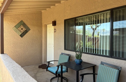State Tax #21272215 This is a smoke free property. Convenient location, near midtown Tucson. Casita D (830sf) is part of a 15 unit apartment complex where all units are situated around a pool. It has a fenced in yard for privacy and carefully chosen furnishings for your comfort and enjoyment. Both bedrooms have king size beds with linens and coordinated decor, the living room has leather furniture, a flat screen tv, and the kitchen is fully stocked with cooking and dining utensils. A washer and dryer are located in the casita as well. The property is centrally located to all of Tucson's tourist attractions, the University of Arizona and area hospitals. We do provide free secure parking in our gated parking lot for one car per casita. All parking is in assigned parking spaces. Traveling with a second vehicle, they are able to park on the street outside the complex, or if available we do have a few additional parking spaces for rent at $10 per night extra. Dogs up to 60 pounds allowed provided they are not a 'pit bull or pit bull mix', do not bark, and are not left in the unit alone unless crated. There is a limit of 2 dogs per unit. NO OTHER TYPES OF PETS ALLOWED!