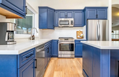 The large open living area with its soaring 12 foot ceilings and beautiful gas fireplace has french doors that open to the pool, it has a bright and airy feeling. Well designed and fully equipped kitchen with quartz counter tops and brand-new stainless-steel appliances, perfect to entertain your family and friends or a cozy night in. Just off the kitchen you'll find a full-size washer & dryer utility room. Large game room off entry with pool table.