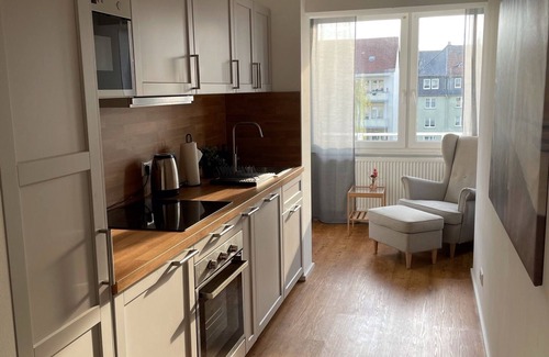 Feel warmly welcome in this beautiful 65sqm large and newly renovated apartment on the edge of the city center of Eisenach, with a view of the Thuringian Forest. We hope that you don't lack anything, which is why we have furnished everything with a lot of love. Our kitchen is fully equipped, you will always find supplies such as coffee beans, salt, pepper, olive oil, sugar, soap, dishwasher tabs, bed linen and towels (also for the dishes).