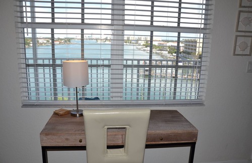 Swimming pool and deck are shared with the hotel next door. No additional fees to use. Beach access across the street. NO FISHING OFF BOAT DOCK OR POOL DECK. Plenty of free parking under the building. Luggage carts and shopping carts available.