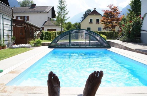 Our house is located in a central, quiet location and has been awarded by the Private Room Association with the rating of 4 Edelweiss. We offer our guests an apartment and three double rooms with garden and pool use. Summer and winter, it is an ideal starting point for any activity. Only 200 meters to the Höss gondola lift, 400 meters to the Kneipp facility, outdoor pool, mini golf and tennis hall, our house is very centrally located. In the immediate vicinity are children's playground, Alpineum, paraglider landing, Höss-Halle, trail entrance, bus stop, shops and inns. You can park your car right in front of the house.