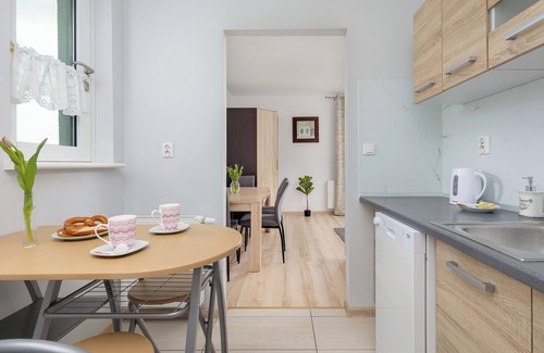 Dunikowskiego Comfort Studio is a cozy apartment that features a living room with a sofa bed, a kitchen, a bathroom, and a balcony where guests can relax and enjoy their morning coffee or evening glass of wine. It offers a range of top-class amenities, including free WiFi, terrestrial TV, a washing machine, an iron, a hairdryer, a dishwasher, a kettle, an induction cooker, a fridge with a freezer, and kitchen accessories.