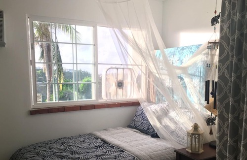 Idyllic 3 BR house on the edge of El Yunque Rainforest. Situated on the crest of the hillside property overlooking palm trees and banana plants, facing west towards the sunset and San Juan. Our house is now completely SOLAR POWERED, so totally self sufficient (no more power outage concerns)!!