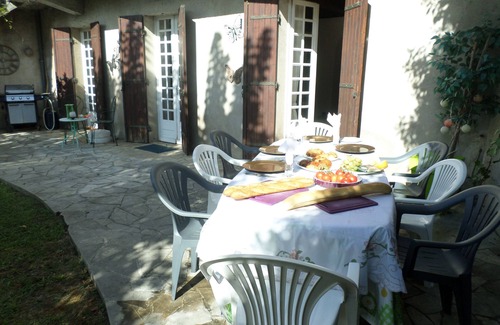 A lovely stone built house in the medieval village of Clairac, this renovated house looks over the River Lot to the Benedictine Abbey of Clairac. The village, with its sand river beach, boulangeries, restaurants, bar, bank, chemist, supermarket, delicatessen, doctors surgery and weekly market, are all in easy walking distance, which means the car is not necessary for daily living - but with delightful walks along the river and surrounding countryside, you can combine the best of both town and country living. The house has a riverfront garden as well as a large south-facing back garden with private pool. The interior of the house has been renovated throughout and benefits from large, light filled rooms with views either looking out over the river Lot to the Abbey of Clairac or to the gardens at the back. The house comprises a well equipped kitchen plus laundry room with oven, hob, fridge freezer, microwave, coffee machine, toaster, kettle, utensils etc., washing machine, dishwasher, vacuum cleaner, iron and ironing board. There is a downstairs reading/music room , CD player with CD’s, bookcase and books and walk in closet. There is a small office, with a desk and chair, internet access (WiFi) and pamphlets and flyers on places to visit. There is also a downstairs toilet. The hallway opens into a large living/dining area of 60m.sq. dominated by a lovely open stone fireplace and open beams. There are sofas, chairs, low tables, a TV/DVD, English and French channels (and a selection of films) a dining table and chairs for 8 with indoor and outdoor plates, glasses, etc. There are 3 sets of french windows that open out to the covered terrace and garden/pool area. A lovely winding wooden staircase leads to the upstairs where you will find a long, wide hallway and 4 light filled double bedrooms and a family bathroom. Bedroom 1 overlooks the river and has a double bed and en-suite shower room and dressing room; bedroom 2 has a double bed and overlooks the garden, it also has an en-suite shower room and dressing room. Bedroom 3 overlooks the garden and has a double bed and walk in cupboards and bedroom 4 overlooks the river and has 2 single beds, a sofa bed and a walk in cupboard. All bedrooms are equipped with bedside tables, lighting etc. and all linen and towels are supplied. There is a family bathroom with bath and shower. A balcony runs the full length of the back of the house with a door from the landing and stone steps leading down to the gardens below. The house is fully centrally heated. Outside, the front riverside garden is ideal for fishing (subject to obtaining a licence) or just watching the boats go by. The back garden has a covered terrace with BBQ, lighting and table and chairs for 8. The pool is fully secured, with pool furniture, sun umbrellas and lighting etc. There is a swing and slide set for the youngsters and off-street parking at the end of the garden. There are adult and children's bikes. For the babies we have a cot, high chair, baby bath and ring and bowls and cutlery. Fishing is from your own riverfront garden, (Carp, Catfish Barbel and Chub, licences are available locally at very reasonable rates) golf; horse riding; boating; canoeing, kayaking, walking, cycling and tennis are just some of the activities available nearby. The area is full of pretty XIII century Bastide towns set around market squares and host to weekly markets & also weekly night markets during the summer season. (Laparade on Tuesday night is a must!) For days out this area of France has a greater variety of scenery than almost anywhere else, the surf beaches and sand dunes of Arcachon; the Cathar country of Carcassonne; the mountains of the Pyrenees, the mediaeval and bastide towns of Nerac; Monflanquin; Pujols; Bonaguil; Rocamador; Moissac and Cahors, to name just few and coupled with the rolling countryside, orchards and sunflowers of the Lot. Whether your ideal holiday is wine tasting, visiting chateaux, eating out at wonderful restaurants, walking and cycling, touring or just relaxing by the pool reading your favourite novel or sitting in front of the river 'gone fishing' style and watching the world go by, we are sure you will find it all here. If you would benefit from a cosy autumn or winter getaway, the house is fully centrally heated and has a magical open fire place.