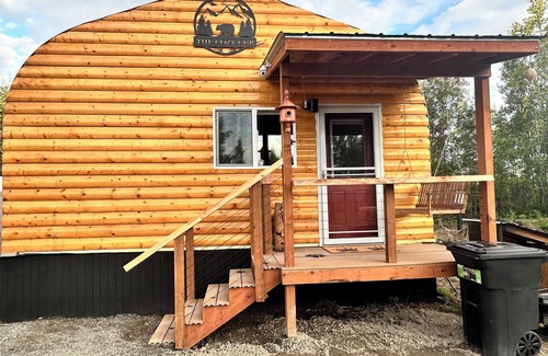 Take a break in Big Lake at this unique Quonset Hut. Known as Alaska’s Year-Round Playground, many come to enjoy recreational activities & adventure. Relax in a cozy queen bed or in a comfortable living room featuring a modular sleeper couch. Stay warm with heated floors, and take advantage of convenient amenities like a full kitchen, washing machine, & WiFi. With views of mountains on the horizon and only 1 mile from the lake’s recreation site, this cabin’s where your Alaskan experience awaits.