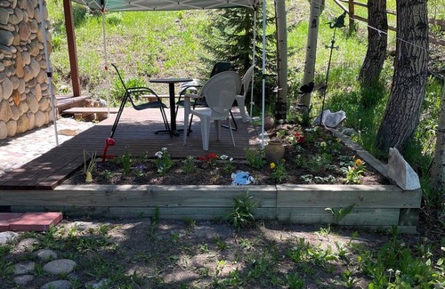 Mt. Crested Butte 1st floor end unit that has Kitchenette, king bed, large shower and living room with new smart TV; sofa and work table can also be used for dining. There is a one bedroom 2nd floor unit you could also rent if u have a larger group. The 2 units have a common entry area but each unit has their own separate entry door. The kitchenette has microwave, fridge, coffee pot, hot plate with skillet and saucepan and small crockpot. There is a deck off of the bedroom that faces Mt Crested Butte as well as a patio in summer. In winter it is covered in snow. The outside spaces are great in Summer,Spring,Fall because of small covered deck and large wooden patio with canopy and flowers and trees. People tell me it is relaxing. The West Wall Quad Lift is a short walk up hill (ONLY Dec 20- March 5 and then snow starts to melt) or the free condo loop bus stops at our driveway every 1/2 hour, in winter. From April thru November ( or anytime) you can walk 15 minutes to base area. ( if u live at this altitude it is less than 10 minutes).There is parking for 1 car as this unit only sleeps 2. The unit has no safety features for toddlers. There are biking and hiking trails nearby. This unit is no smoking on the property and no pets due to owner's allergies and regular guest's allergies. The owners live in the house so u may see us outside and this is a caretaker unit. We do not allow atv's or dirt bikes or trailers on the property. This is a dead end street and quiet neighborhood with a lot of locals. Entire unit is decorated in museum quality free-style ski exhibits from the 70's. It would be rare to find a condo with an exhibit like this. Paul is on the editorial board of ISHA. (International Ski History Assoc) . Maximum stay of 5 nights is best since it only has a kitchenette, but you could stay longer if you like to eat out. NOTE: we have a fan in bedroom in summer if it becomes hot. There is NO air conditioning. We have windows that open. NOTE: The 1st floor and 2nd floor units can be rented separately or together and each unit has a separate vrbo#. Please do NOT bring BIKES inside. You can leave locked on your vehicle or park behind your unit. A special note: The unit is disinfected according to cdc guidelines after each guest- clean towels, sheets, blanket; EACH guest. General surfaces, baseboards are cleaned & dusted after each guest. The unit is 30 years old and the Saltillo tile is steam cleaned once per year and then vacuumed and mopped after each guest, but it is worn in some places, so be aware it is clean but dated and priced accordingly. Our guests seem to love the unit and its art, outdoor space and proximity to everything. You can walk to many hiking, biking trails and restaurants. If you have questions, please email ahead before you book. thanks