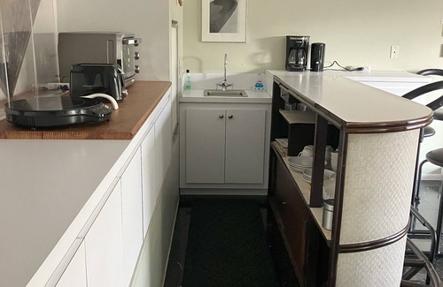 A quiet retreat. 1 bedroom 1 bath (with tub/shower) apartment with living room, kitchenette bar area with stools. Large TV with all premium channels and WIFI. Desk and chair