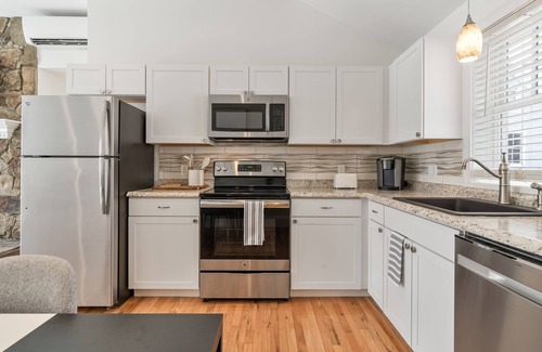 The full kitchen is equipped with stainless steel appliances, allowing you to prepare meals with ease. In the full bathroom, you'll find everything you need to freshen up and relax during your stay. Whether you're looking for a comfortable night's sleep, the convenience of in-unit laundry, or the ability to cook meals, this space has you covered for a relaxing and enjoyable stay.