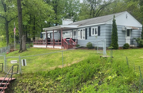 Dalton Lakeside Cottage is the perfect place for a peaceful getaway with family, friends and good neighbors. Located on a quiet private road, you will pass through a narrow but short underpass that is not an issue for a full size pickup or SUV. The cottage features 3 bedrooms, 1 bath with a kitchen and living room. We prefer you to use the screened windows to keep cool, but there is an option for A/C if needed. We have a RokuTV that allows guests to sign into their streaming services. High speed internet is also available provided by Spectrum. You will be spending most of your days outside grilling on the covered Front deck while your kids playing in the secured back yard or enjoying your time relaxing on Dalton Landing watching the sunrise and sunset as you enjoy your morning coffee or your evening glass of wine. Relax by the outdoor fire-pit at night. There is a charming and historic train that runs by the house. The train has no set schedule but does go slow and the conductor will even blow the whistle for you if you wave to them. There is also a long dock for your convenience, whether you choose to fish from the dock, rent a boat at Roy's Marina or bring your own boat. The cottage is a short drive from a local farmers market called "The Windmill" and about 30 min drive from the waterloo shopping outlets. This is a wonderful cottage that is perfect for that quiet weekend we all need with family and friends. If this sounds like the place for you, please submit your booking request to lock in your dates. Ask about boat docking and trailer storage. We do not supply a washer & dryer but list of laundromats will be available at the cottage. There are also 2 security cameras located on each corner of the front of the house, these are used for security purposes only, there are no other cameras in any guest areas of the cottage.