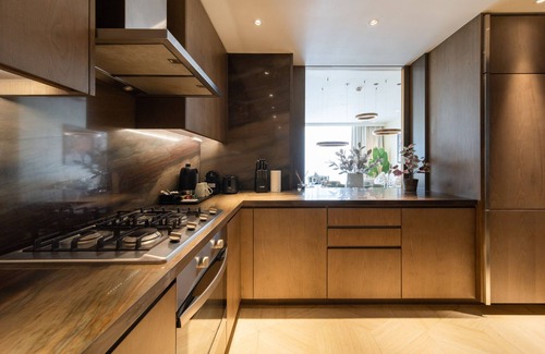 The Dining area is situated next to a classy and spacious Semi-American-style kitchen, which is fully loaded with essential kitchen appliances such as a coffee machine, a toaster and a kettle for your convenience.