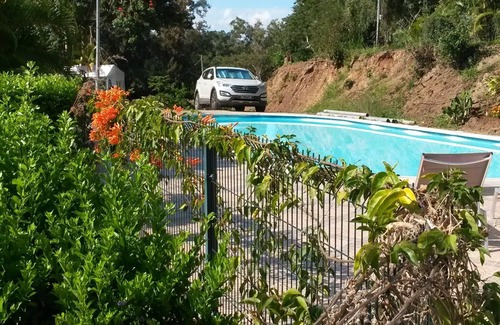 in villa on 1.8 hectares of land, rent independent F3 with 2 bedrooms - living room - built-in kitchen (fridge with freezer-induction hob - toaster - electric coffee maker-kettle-rice pot - microwave-washing machine) crockery- cutlery- kitchen utensils) Tea towels - towels TV flat bathroom - wc - hair dryer - air conditioning complete bedding 3 x 160x200 Wifi pool 12x6m our phone: (687 941038) our Email: (fglal @ canl. nc)