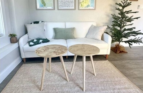 550 square foot home with open-floor plan kitchen, dining, and living room. One bedroom with a queen bed, drawers/closet for storage. Full bath with oversized tiled shower. Dedicated work space that conveniently tucks away to allow you to relax when not working. Living room with fold-out sleeper couch and smart TV. Full kitchen with standard size refrigerator, stove/oven, and dishwasher. All linens, dishware, and cookware provided. Pet dishes and pet bed!