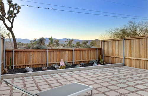With A/C and heat! Remodeled 2BD/1BA mid-century home with immaculate views of the San Jacinto mountains & Joshua trees. Breathtaking sunsets. Each room w/a queen size bed & views of backyard. Centrally located ~10 mins drive to Pioneertown & downtown JT