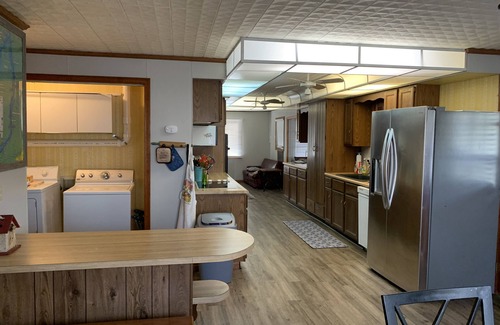 Perfect for bigger groups that want to get away or go on a fishing trip. We are walking distance from the lake and 5 minutes away from two Marinas to put in boats or for boat rentals. We have flat screens with ROKU’s, wifi, and awnings/ outlets for boats. Coffee is provided and there is plenty of yard space for parking or relaxing by the fire pit. We have a full kitchen, charcoal grill, high chair, linens & soap. We have a game room with a foosball table, pong table & board games for the kids.