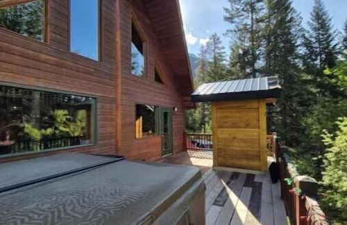 Make yourself at home with 4 queen bedrooms, 3 having a full ensuite bathroom! A 4th spacious bathroom is just outside a main floor bedroom. For the kids, we have a 5th bedroom with two bunkbeds, and an additional bunkbed in the downstairs common area. Working travellers will enjoy a comfortable desk area with good quality internet connection. The kitchen and living area are large and comfortable with plenty of seating for social gatherings and family style meals. A partial wrap-around deck boasts amazing views, a BBQ, a hot tub, a sauna, and a lounge seating area that overlooks our backyard green space with firepit and room to play.