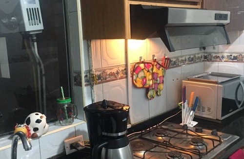 beautiful furnished apartment fully equipped, 2 bedrooms double bed up to 4 guests 1 bathroom with tub, kitchen, covered patio with washing machine, dining room, smartv TVs, 3 closed, study with desktop computer, 24 hour security, close to commerce, restaurants , ice cream parlors, clinics, schools, shopping center, small pets are accepted, large pets have a patio, the kitchen includes electrical appliances