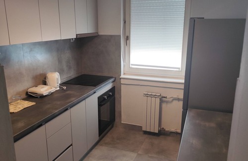 , hairdryer, towels) - 1 Terrace (6 square mettars) with great view of the sports field and Vodno Mountain. - 1 Kitchen with refrigerator, oven, toster, stove. The apartment have elevator in the building.