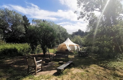 Luxury 6m Lotus Belle tent furnished beautifully with wood a burning stove inside, fire pit outside and the use of our amazing Natural Swimming Pond. Located on the historic Haveringland Hall estate only 9 miles from norwich and 17 miles to the beach in a stunning part of central north Norfolk between Aylsham and Reepham.