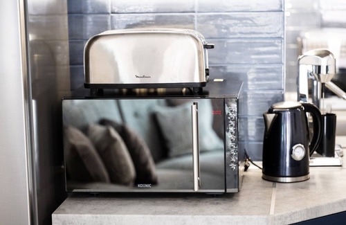 The fully equipped kitchen allows you to prepare delicious meals, complete with a coffee machine, dishwasher, kettle, toaster, microwave, and fridge perfect for those who enjoy cooking or prefer to enjoy home-cooked meals during their stay.