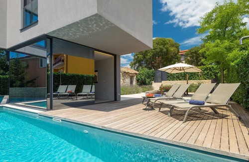 Villa Hallo Sunshine is the perfect villa for those who appreciate design and architecture. It is a majestic modern interpretation of a perfect holiday home, in a traditional landscape. If you want to spend a luxurious holiday in a stylishly furnished, modern villa, then this is the right choice for you. There are four bedrooms available, as well as three bathrooms. A special place is definitely the roof, where there is a whirlpool. Here you can spend romantic evenings enjoying the breathtaking view of the Adriatic Sea, while herbal scents from the Mediterranean garden relax your senses.