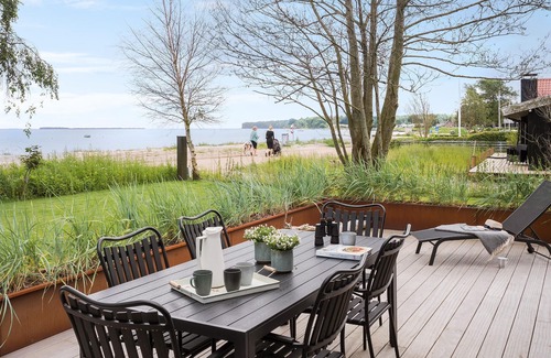 There is no better way to spend your vacation than in this modern and comfortable vacation home right on the beach. Arrive here and discover the high-quality furnished and equipped house, which combines life inside with the garden and the sea at your feet. Enjoy the panoramic view in the living room, warm yourself in front of the wood-burning stove during a movie night and conjure up delicious meals in the stylish and fully equipped kitchen.