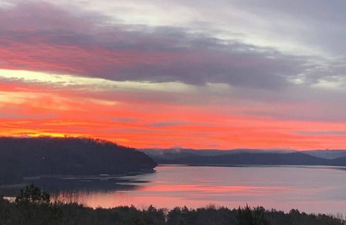 Cozy log cabin with gorgeous view of Beaver Lake. No pets . Cabin is “Open Concept Floor plan”. Large Cedar beams on ceiling with open loft upstairs. Black iron railings on stairway & Loft. King bed upstairs & down.