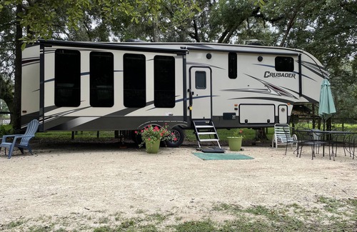 Newer 5th wheel camper sitting on about two acres of forest like land. 4 miles from WEC , under 10 minutes from shopping center. 12 miles to rainbow river springs state park and more springs. close to I-75 interstate. surrounded by horse racing farms in a tranquil setting. Internet wifi