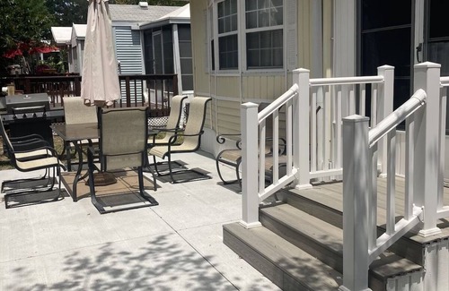Quiet, serene location in Sarasota's Sun Outdoors, premier resort. Endless amenities, activities and entertainment await you. There is something for everyone, all ages, all interests. Daily schedule of activities. Pools, pool bar and grill, gyms, music, sports, mini golf, lawn bowling, art classes, woodshop, pickleball. 15 min. to Siesta Key, Lido Beach, Armand Circle, 10 min. to the Mall at University Town Center. 15 min. to Mote Aquarium, 5 min. to Big Cat Habitat. Tons of fabulous restaurants nearby. New outdoor patio and BBQ area . Pickleball galore! Excellent courts, teams, leagues available . Amazing gym with indoor pool and hot tub. Art classes, exercise classes, woodworking shop, all sorts of social groups. Unit is cozy, all amenities, free Wi-Fi.