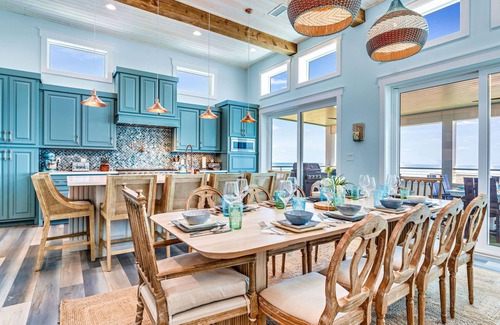 Completed in June 2024, this 4,000-square-foot home sleeps 14 people across 6 bedrooms––all with spectacular ocean views making it ideal for families, corporate retreats, and special occasions. Stunning ocean views are awe inspiring from the main floors and 360-degree ocean and bay views from the covered watchtower which is the highest vantage point in CSB. The tower comes complete with a firepit table and Adirondack captain chairs to enjoy the sunrises over the Bay and unparalleled sunsets over the Gulf. Two bars, two living areas, custom cabinetry throughout, hand-crafted fixtures, furnishings, and fine art sourced from around the world, every inch of this home was carefully designed and curated with you, the guest, in mind.