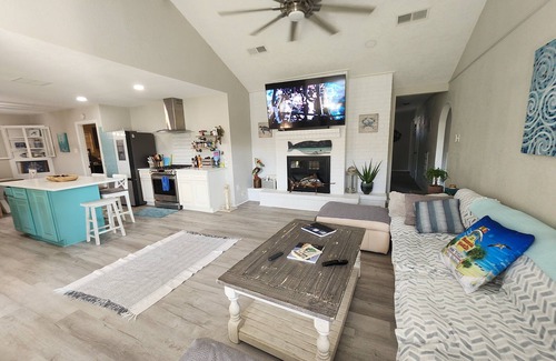 Relax and enjoy the waterfront with the whole family at this peaceful getaway close to Galveston beach, Kemah boardwalk, Schlitterbahn waterpark, Nasa space center and so much more! Bring your boats and enjoy the dock with two boat slips or use the included kayaks to enjoy Premium saltwater fishing paddle distance away!