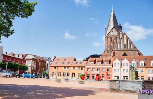These houseboats are located in a separate part of the Barth marina. You live very close to nature, from the upper deck you have a wonderful view over the Bodden; at the same time, the old town and the city harbor are only a few minutes' walk away, which offers you an excellent combination of relaxation close to nature and proximity to the city's offerings. Each houseboat has an additional small wooden hut on the jetty where you can park bicycles, for example. A handcart is available for transporting your luggage on the premises. Highlights included: final cleaning, WiFi (limited in the harbor), parking space You will find a small, guarded beach on the Bodden on the outskirts of Barth. The wide Baltic Sea beaches of the "Fischland-Darß" peninsula are about 10 km away and can be easily reached by car, bike or bathing ship. Idyllic villages with picturesque thatched-roof houses and a carefree beach life on the Baltic Sea await you there. Wide, protected water areas allow for a wide variety of water sports: fishing, sailing, surfing, motorboating, swimming, rowing and paddling. There are many leisure activities, sports and excursion destinations in the region. In Barth, you can easily reach the city harbor and the city center in just a few minutes on foot. The charming little town offers a lively and historic flair with lovingly restored town houses, medieval alleys and many listed brick Gothic buildings. The harbor square and the promenade invite you to stroll and take a stroll and offer the right setting to unwind. Note: Bed linen and towels can be booked and are not included in the travel price!