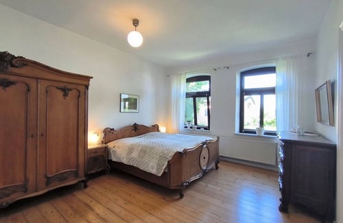 Cozy, bright apartment, about 90 square meters, partly antique furnishings, consisting of living room, 1 double bedroom, 1 bedroom with double bed 1.40m wide and a cot, large cozy kitchen with dining area, modern bathroom with direct access from the bedroom. Furnished Porch overlooking large pond. On arrival 100,00 € deposit to deposit.