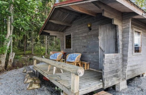 Lakeside sauna with wood-burning sauna stove, dressing room. Water to the sauna must be brought by using buckets. Water can also be taken from the cabin by using a hose. Cozy cabin in a peaceful location by the fishy lake Mouhijärvi.