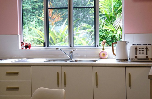 The apartment is completely self-contained and located on the ground floor of a large Queenslander home. Located at the end of a cul-de-sac, Hillside Hideaway is a peaceful location close to nature, with an abundance of bird life and frogs nearby, and lush plants lining the windows.